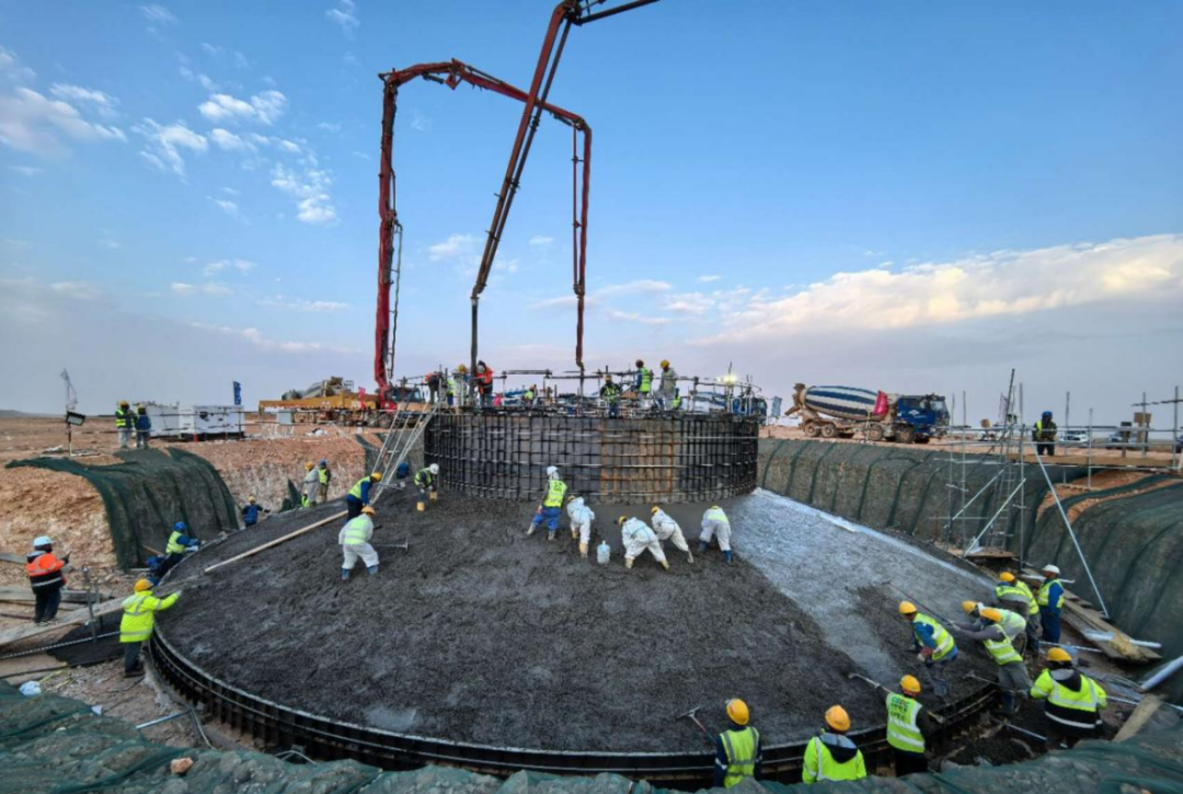 当地时间3月8日,由中国能建国际集团、广东火电、西北院联合总承包的全球在建最大陆上风电项目——沙特PIF5夏奇拉1GW风电项目首台风机基础混凝土顺利完成浇筑,标志着项目正式迈入主体工程建设阶段。